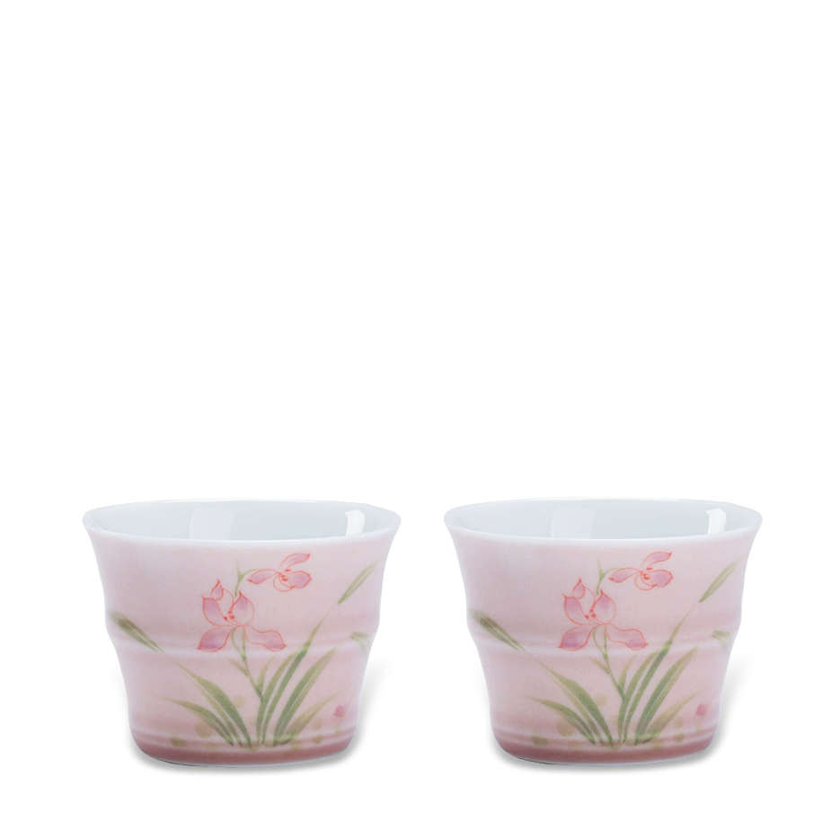 Pink-green gradient finish with hand-painted orchids, perfect for home gongfu tea tasting and daily tea ceremonies.