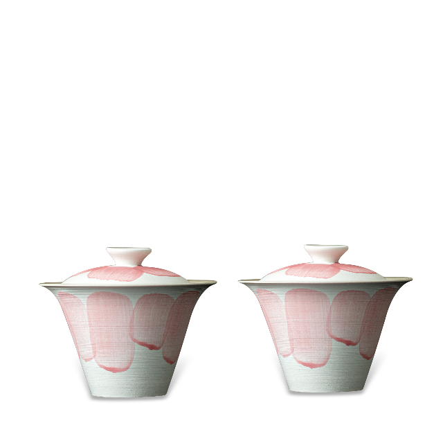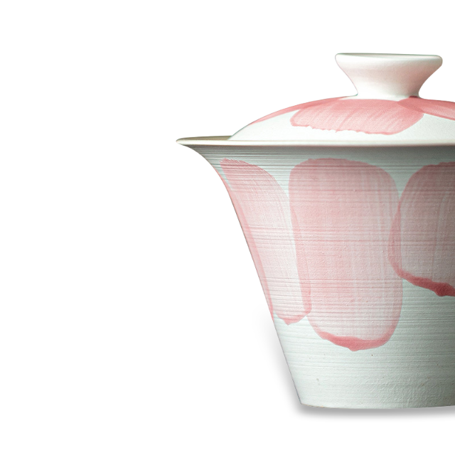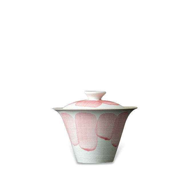 Chinese Porcelain Matcha Powder Tea Bowl-Main, heat-resistant ceramic with pure white interior. Pink-white finish features hand-painted matte pink speckles, ideal for gongfu tea brewing and home tea ceremonies.
