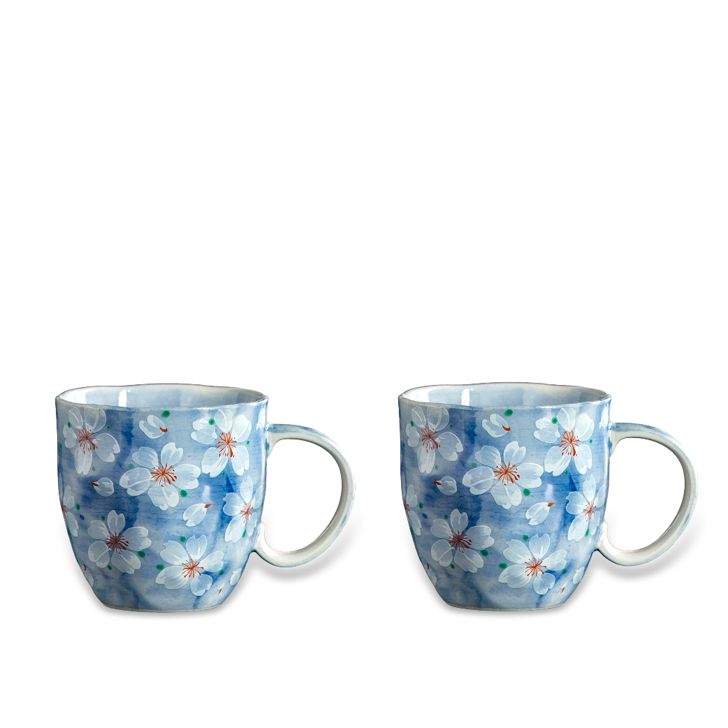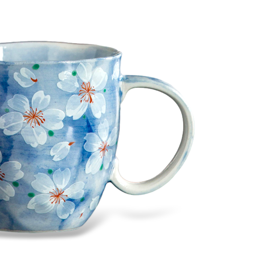 Imported Japanese-style cup with blue-white hand-painted floral patterns. Heat-resistant porcelain, pure white interior, perfect for daily coffee and tea brewing.