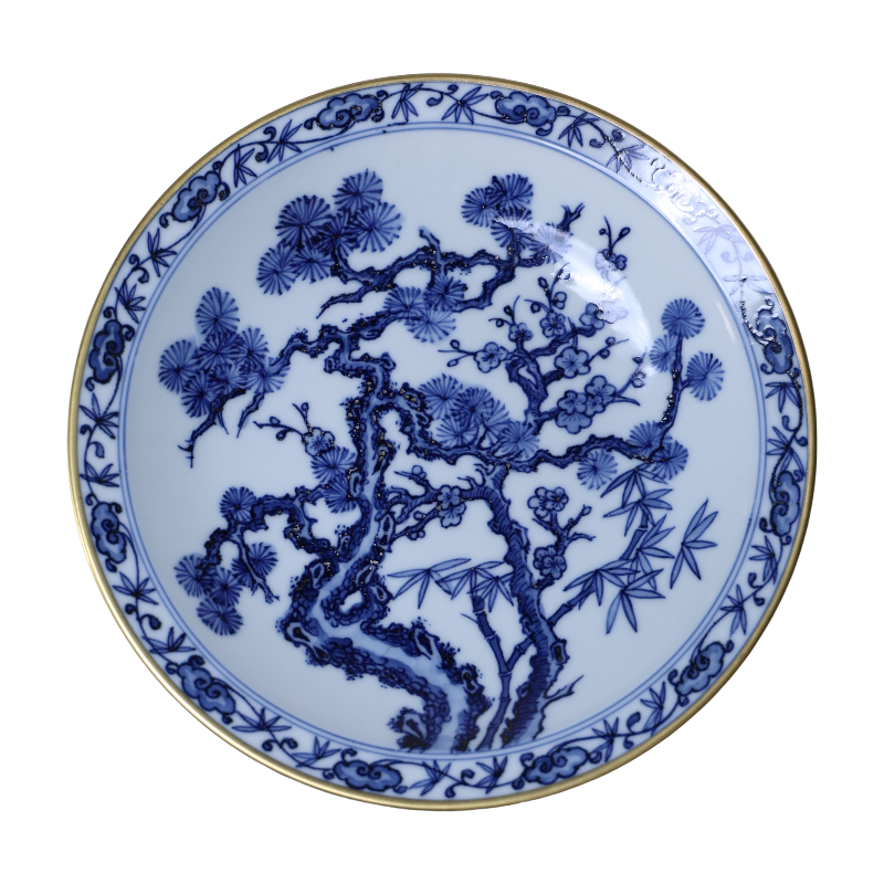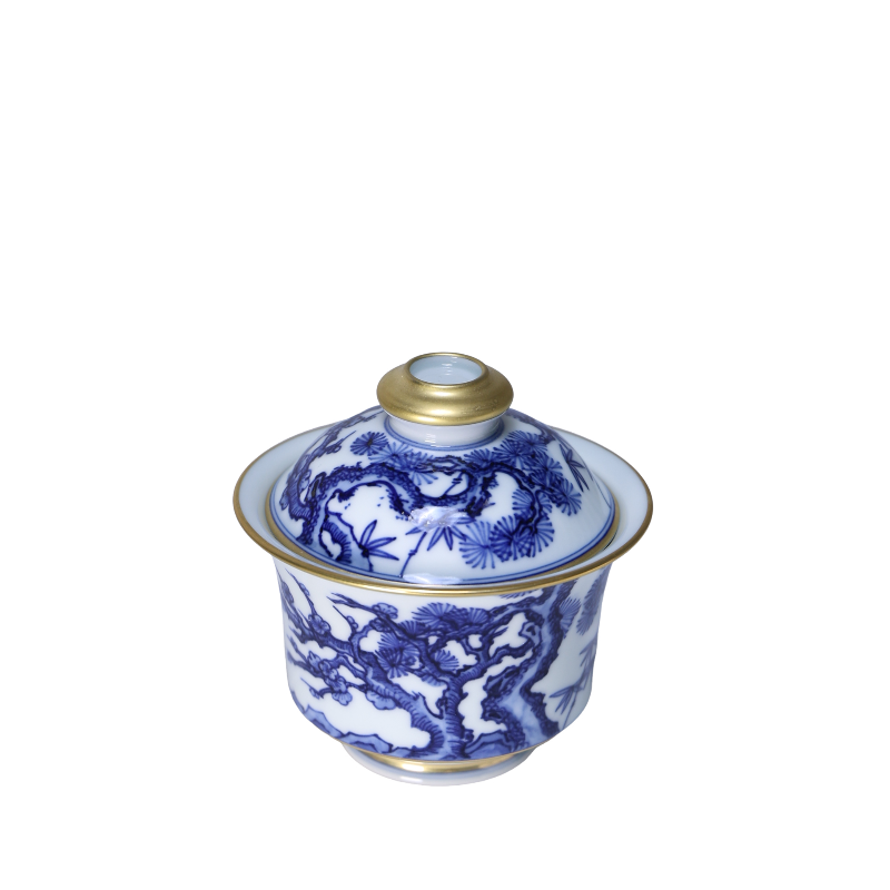 Pine Blue and White Porcelain Gilded Gaiwan