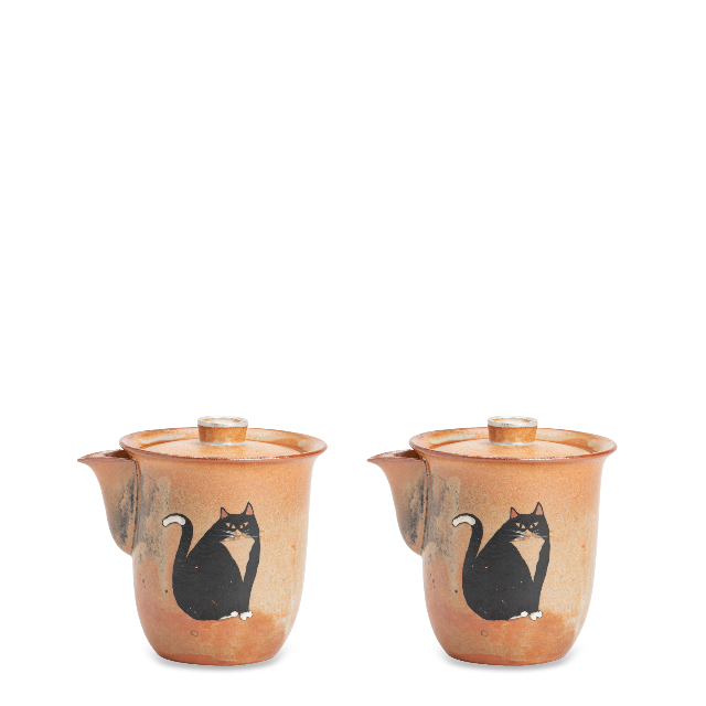 Shino Lucky Cat Handmade Ceramic Teapot. Features silver-gilded lid, built-in filter, ideal for various teas. Unique vintage design, matches the same series cups, fair cup and tray perfectly.