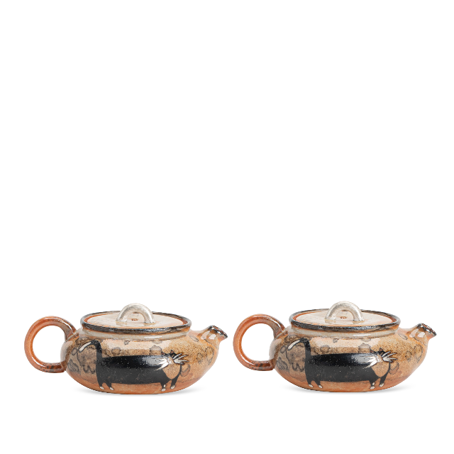 Shino Lucky Cat Mini Flat Tea Pot